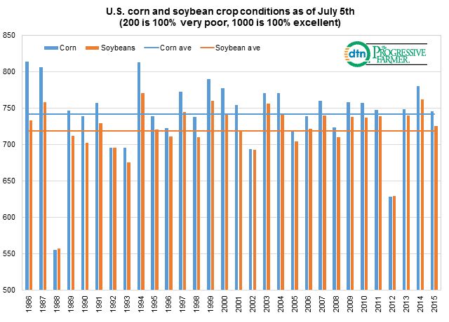Early July 2015 corn and bean ratings actually above average